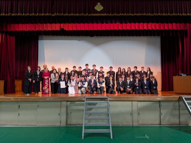 令和8年3月24日(火)母校体育館において、第5回「高校生国際科学会議」が、母校1・2年生のほか、大阪府立園芸高等学校、韓国から慶山科学高等学校、台湾から台北市私立東山高等学校、ベトナムからチャン・ダイ・ンギア高等学校が参加して開催されました。前回は平成31年に開催されましたが、新型コロナウイルス感染の拡大による延期を挟み、今回は5回目の開催となりました。
