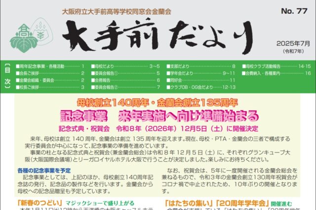 2025-10-14(火曜日)大手前だより 第77号(2025年7月発行)を掲載しました